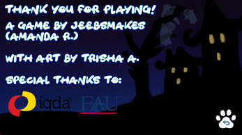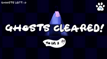 Ghost Purrge is a short ghostbusting game where you use your handy flashlight to navigate dark rooms and suck up ghostees. The rooms grow darker with each level and there mayyybe a few invisible obstacles you'll have to get around. Catch em all and win small in Ghost Purrge!