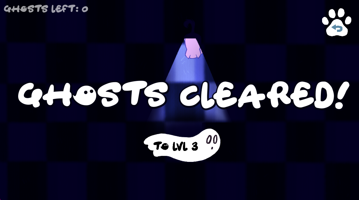 Tip: Your light must be touching the ghost to catch it, which means you can't catch ghosts through walls! Also, you're quite a small cat so you can only catch one ghost at a time!